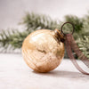Our two-inch champagne crackle glass ornament adds a warm golden note to a tree and to your holiday decorating. The pale metallic tone, detailed with a textured crackle finish, reflects light beautifully and blends seamlessly with both rich colours and greenery.